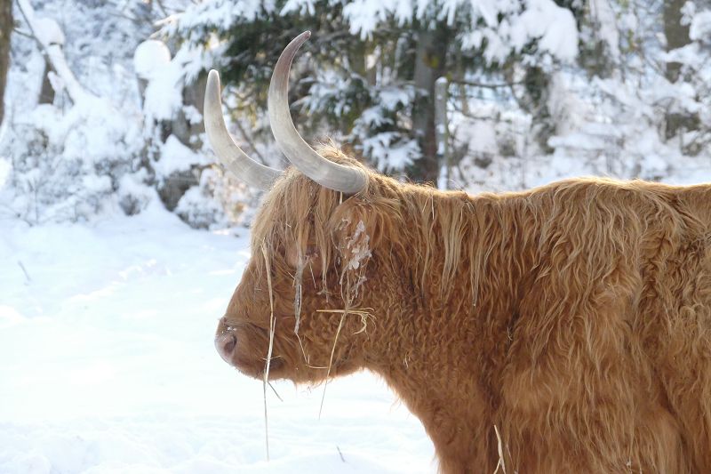 Ich bin also mit dem Traktor auf dem Weg zur Kuhweide. Dort angekommen erwartet mich eine unberührte Winterlandschaft: