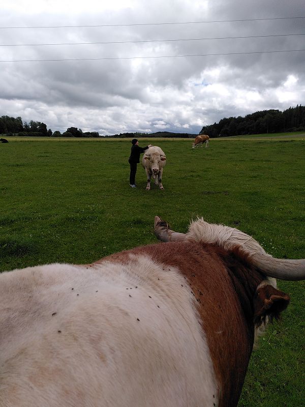 Nachdem Sir ausgiebig gestreichelt worden war, kam Eva noch auf einen Sprung auf die andere Weide 🐖🐖 mit.
