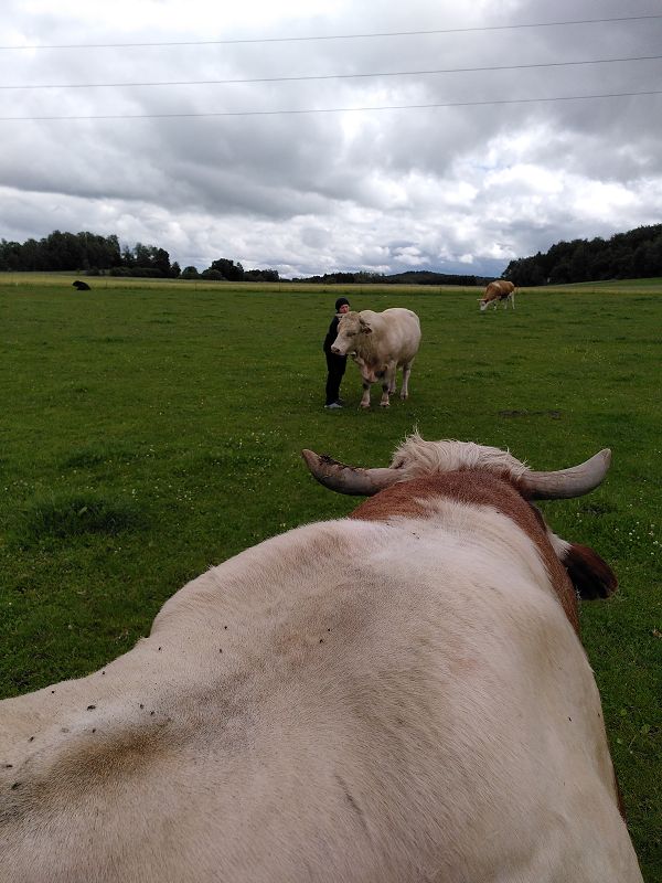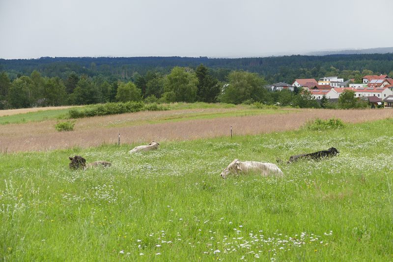 Wir gingen auf die Weide, wo die Puppi-Buben gerade nur mit Herumliegen und Wiederkauen beschäftigt waren und ihrer Umgebung nicht sonderlich viel Aufmerksamkeit schenkten.